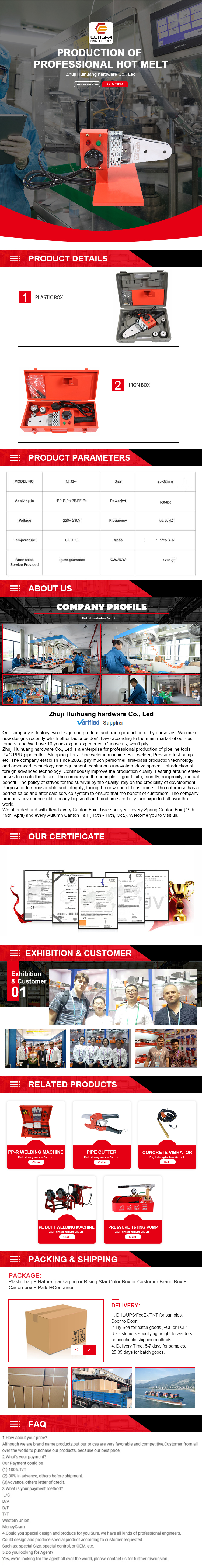 诸暨市辉煌五金有限公司是一家专业生产管道工具,PVC,PPR剪管器、电动修枝剪、热熔器、对焊机、试压泵等的企业。